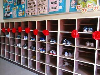 靴箱がきれいな状態だと、気持ちもすっきりしてきます。そろえることで,心のスイッチのオンとオフができ,落ち着いて活動できるようになってきます。