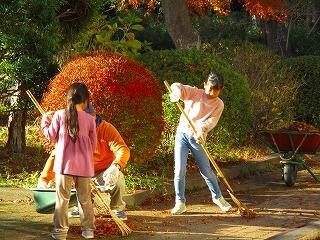 自然豊かな手賀東小学校は,風が吹くと赤や黄色の葉がひらひらと舞い散ります。子供たちが,一生懸命落ち葉を集めました。