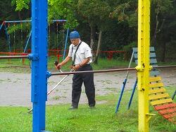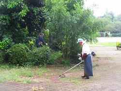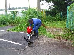 学校にはない,機械を持参してくださって草刈りが始まりました。