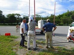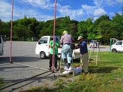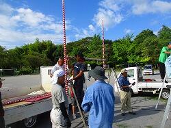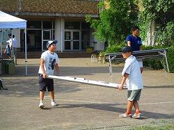 朝8時から,夏まつりの準備が始まりました。校庭にやぐらを組み立てます。地域の方の手作りの夏まつりです。