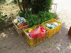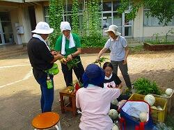 ビンゴゲームの景品準備です。地域の畑で朝とれた野菜を袋詰めしています。