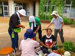 暑くて天気のよい午前中でしたが,協力して作業が終わりました。