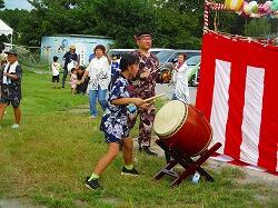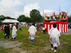 本校5年生児童が太鼓をたたいて,盆踊りを盛り上げました。