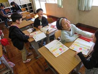 「つないで つないで」の学習では、言葉で伝えることと、体を伝えることのちがいについて考える中で、「れんそうゲーム」と「ジャスチャーゲーム」をしました。