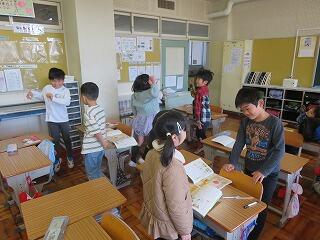 1人一文字担当を決めて、その文字の先生として、漢字を教える学習です。