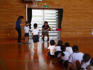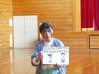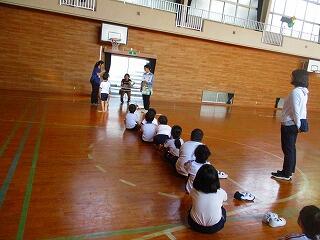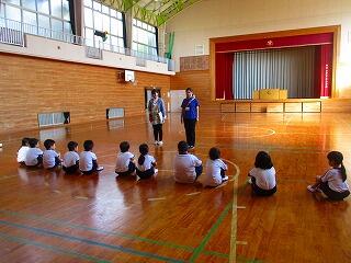 体育館でどんなことをするのかの話を聞きました。姿勢良く,しっかり話を聞くことができました。