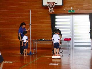 2年生から6年生まで体育館で発育測定と視力検査を行いました。