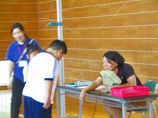 11日(木)に入学した1年生が体育館で発育測定と視力検査を受けました。