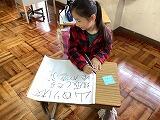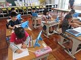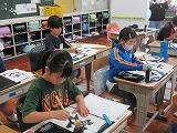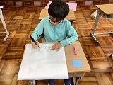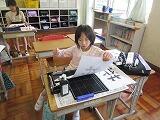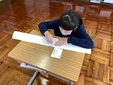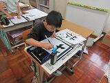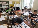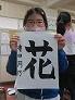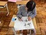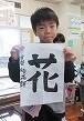 今まで2時間練習し、今日は「花」の清書の時間でした。はじめに、6画目、7画目の練習をすると、みんな集中していました。「7画目のはねを力強く書くぞ」という気持ちが強く、「上手く書けた!」「あーーー・・・」という声が聞こえてきました。いざ清書です!