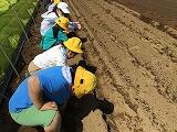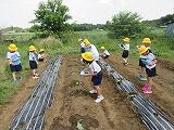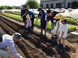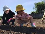 いよいよ農作業体験がスタートしました。本日は地域の農家,大山さんの畑をお借りしてとうもろこしの種まきをしました。3回目のとうもろこし体験の人もいれば,今年初めての人もいる中,どの子も意欲的に取り組んでいました。