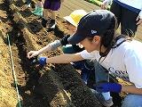 1年生,3年生も大山さんや6年生の指示を聞きながら,だんだんと手際よく種まきをしていました。