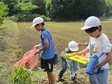 バケツの半分くらいに土や水を入れてかき混ぜて水田に似ているような環境にしました。