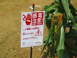 子供たちが観察に来たときには,なかった道具が設置されていました。トウモロコシがおいしくなってきたので,づぶつ立ちの餌にならないようにしています。