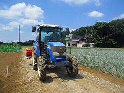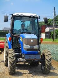 トラクターがこっちに向かって走ってきました。大山さんです。トウモロコシ畑の近くでお仕事をされていて来てくださいました。