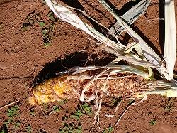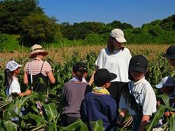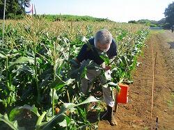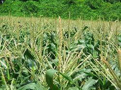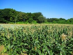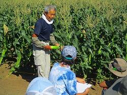 トウモロコシの畑です。収穫が間近に迫っているので,様子を見に来ました。