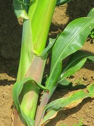 トウモロコシの茎がかなり太くなっています。頑丈な茎なので,少しの風には耐えられそうなくらいまで生長しました。