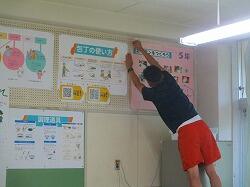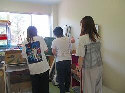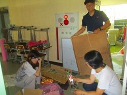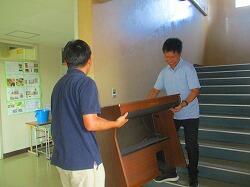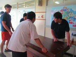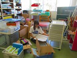 教材室の片付けもします。ここもエアコンがないので,チームワークよく作業しました。
