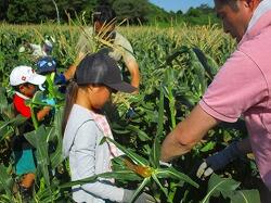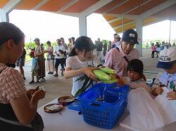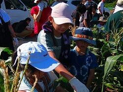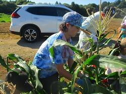 農家の大山さんのお話では,今年のトウモロコシ収穫はとてもよいタイミングだったそうです。去年よりもおいしいトウモロコシが食べられそうです。