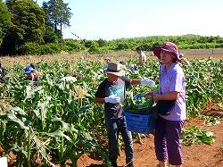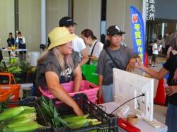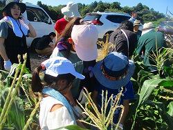 収穫したトウモロコシは,30分で完売でした。