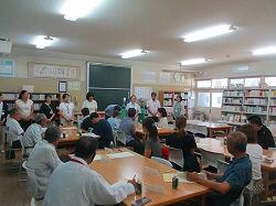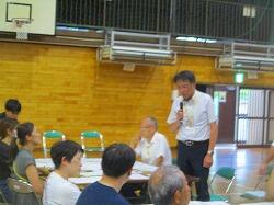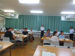 職員紹介の後に会議を実施しました。会長挨拶の後に報告事項、防災講習会の内容で行いました。