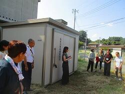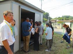 はじめに手賀中学校防災倉庫の中を視察し、倉庫内の物品説明をしていただきました。