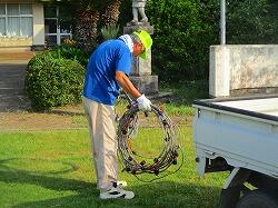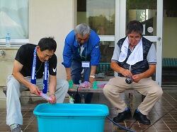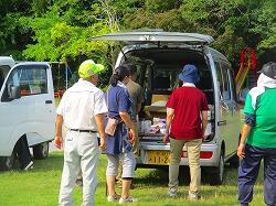 消防団のみなさんのおかげで,車で会場に来ても安心して止められます。暑い中,ありがとうございます。
