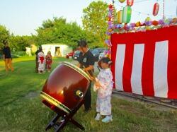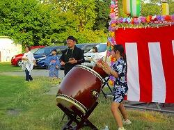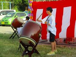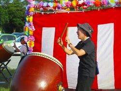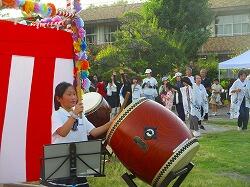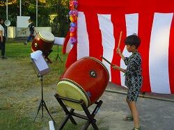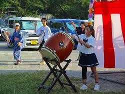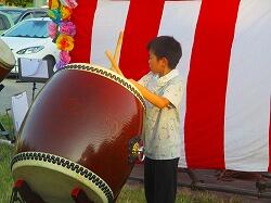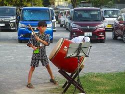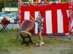 手賀東小学校の子供たちは,今年は盆踊りの曲に合わせて太鼓をたたきました。