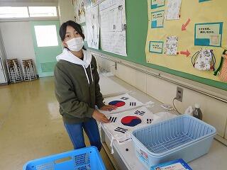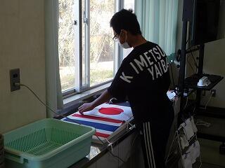 終わった人は、運動会で使った万国旗のアイロンがけを一生懸命行いました。おかげですべての万国旗がしわ一つなくなり、きれいに箱にしまうことができました。