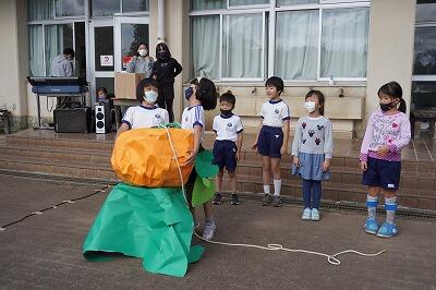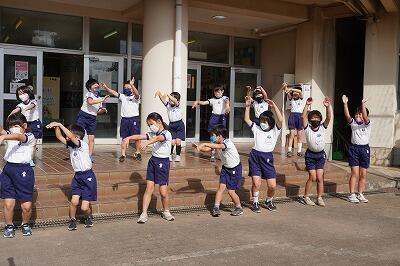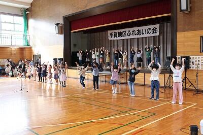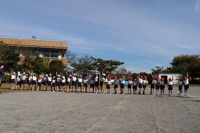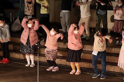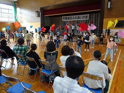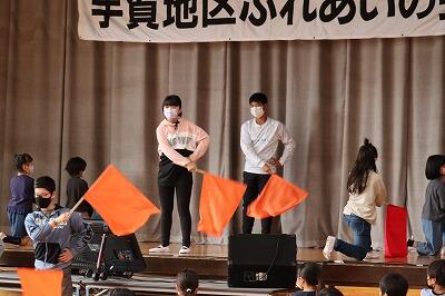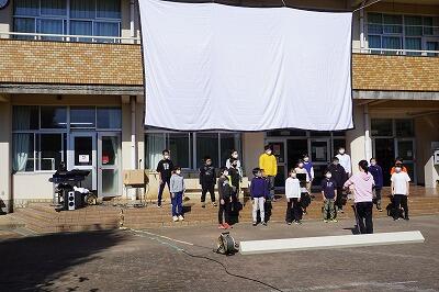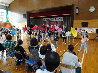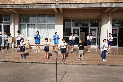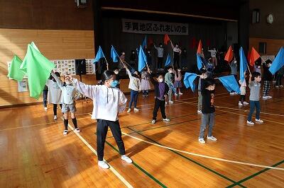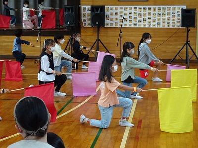 本校は、低学年の「うさぎのダンス」と、全校によるフラッグの演技を発表しました。