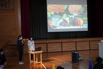 子供たちが1年生から6年生までの縦割りのチームを作り、手賀・布瀬・片山地区に分かれて、地域の方々のご支援を受けながら、農業体験や歴史調べをしたことを発表します。