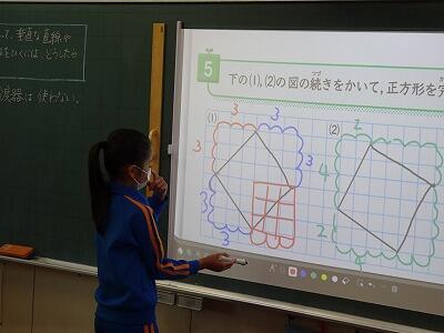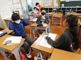 一人でじっくり考えることも大切ですが、このように、何人かで考えたり、発表を見たりすることで、わかりやすい言葉や説明の仕方がわかり、思考力、表現力が上がると思います。