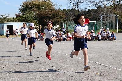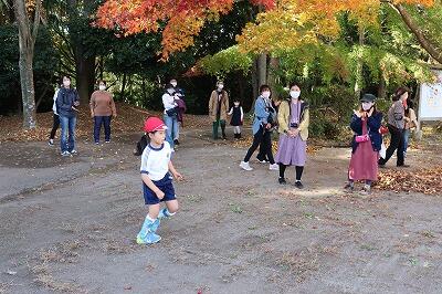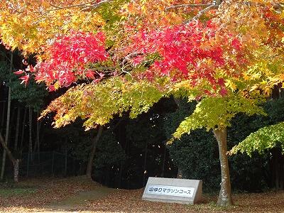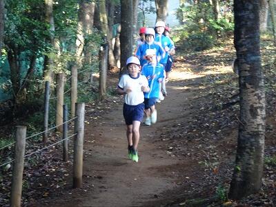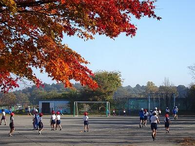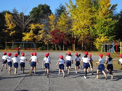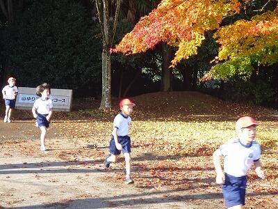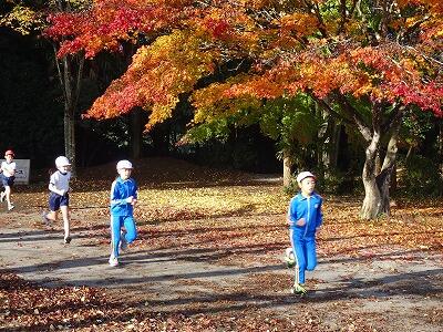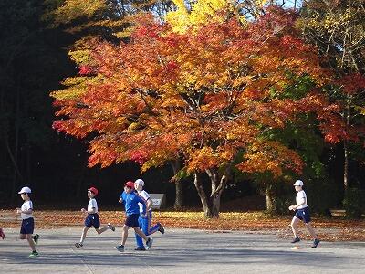 子供たちは、美しい紅葉のなか、やまゆりマラソンコースや運動場を全力で走っています。