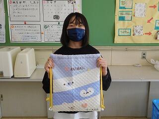 昨年度に作ったエプロンとは違って、重ねて縫うところと縫ってはいけないところの違いや、布を中表にしてから縫うところなどが難しかったですが、無事に完成しました。