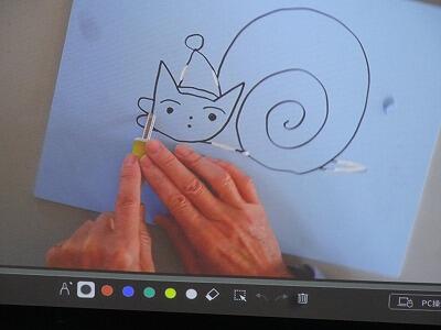 一番心に残ったところを絵に描いて、描いた絵の前で本の説明をしたり、質問に答えたりして、