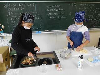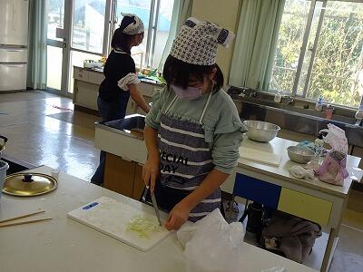 基本的にコンロが一口しかないので、一緒の机を使っている二人で効率よく作業することが必要です。今回も、一人一品作るので、一人が野菜を切っている間に、もう一人が洗い物をしたりと、てきぱきと動いていました。