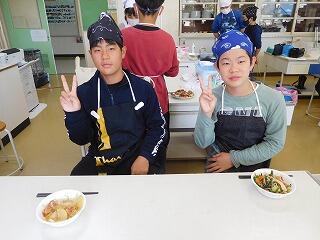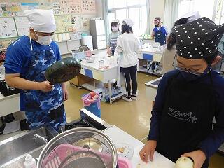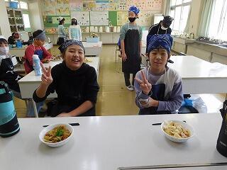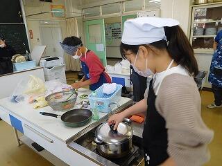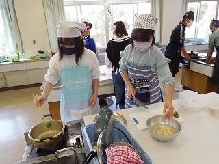トマトのみそ汁を作ったり、最後にみそ汁にねぎを盛り付けたりと工夫ある調理実習でした。