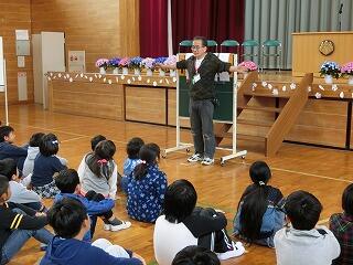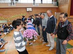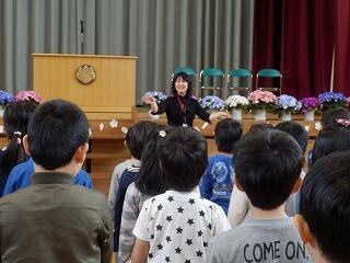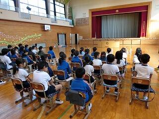 4名のかわいらしい1年生を,2年生から6年生全員で,あたたかく迎え入れました。
