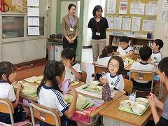 学校給食センターからお二人の栄養士の先生がいらっしゃって,1・2年生に給食指導をしてくださいました。