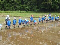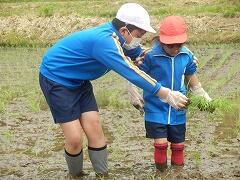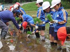 泥だらけの水田に足をとられながらも,協力して楽しい田植えを経験することができました。
