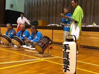 地域の皆様に来ていただいて、手賀囃子を教えてもらっています。
