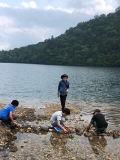 お土産には,子供達が釣ったザリガニと,本校の敷地内で生まれたカブトムシの幼虫をプレゼントしました。