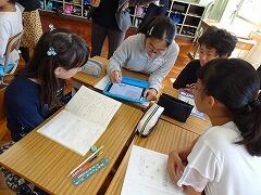 子供たちがタブレット端末を普通に使っている姿や,子供たちを考えさせる場面を大切にした本校の授業をたいへん褒めてくださいました。