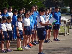 今週末(30日)の,エコウォークに向けて,朝の時間に全校児童が集まりました。