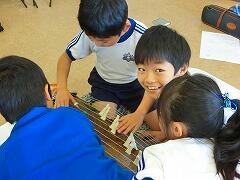 外部から専門的な先生にお越しいただき,3,4年生が箏を習いました。
