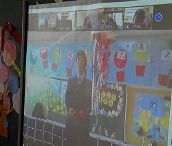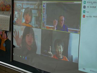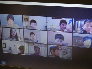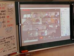 画面上でお互いの顔を見た子供たちは少し照れくさそうにしていましたが,健康観察を行ったり,歌を歌ったりしているうちに,いつもの笑顔になりました。