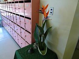廊下や階段など,子供たちが通る場所に,季節ごとの花が置かれています。