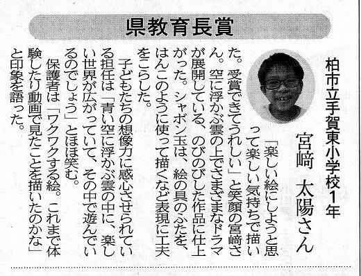 手賀東小は,下記の児童3名と,団体として学校奨励賞を受賞しました。