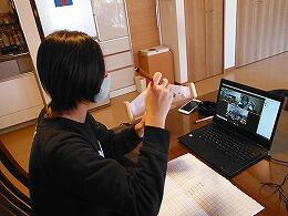 本年度は,学校での対面指導は難しい状況になったため,学校と綾部先生のご自宅をつないで,オンラインで指導をしてもらうことにしました。