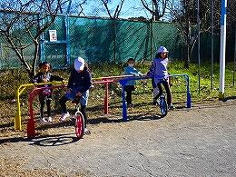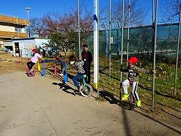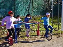 事務の生田先生が指導してくれるので,最近,一輪車の練習を行っている子供がたくさんいます。