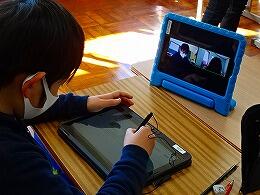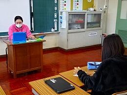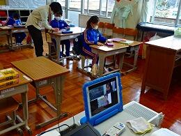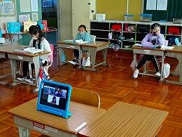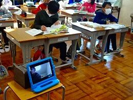 ネットワーク環境が悪く画像や音声が乱れたり,体育のように動きがある学習内容には対応しきれなかったりする課題もありますが,欠席している子供が発言したり,作業の様子を教師が確認したりして,教室での授業に近づける工夫をしているところです。